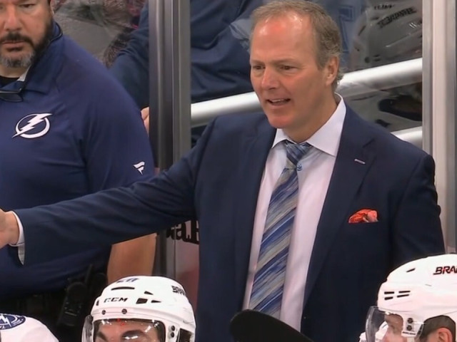 Watch as Tampa Lightning coach Jon Cooper gets upset after a failed coach’s challenge review for offside on a Chicago Blackhawks goal in the first period.