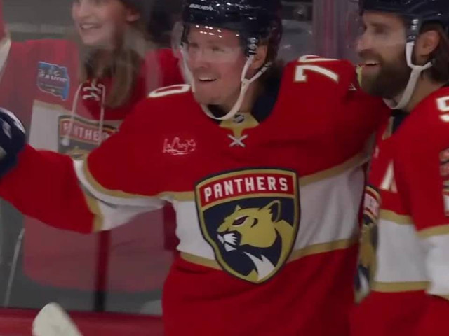 Check out Florida Panthers’ Jesper Boqvist show off his hand-eye coordination, batting a puck out of mid-air for an incredible goal to give the Florida Panthers the lead over the Chicago Blackhawks in the third period.